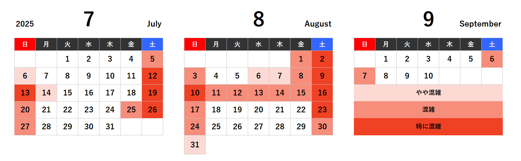 また、8月に入ると、山の日からお盆にかけての連休も、かなり混雑することが予想されます。