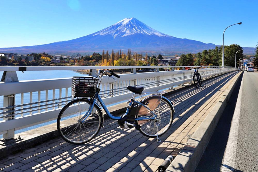 また、河口湖周辺にはレンタサイクル店が充実しており、クロスバイクや電動アシスト付き自転車、子供用自転車など用途に合わせて選ぶことが可能。マイ自転車がなくても気軽に体験できるのが嬉しいポイントです。