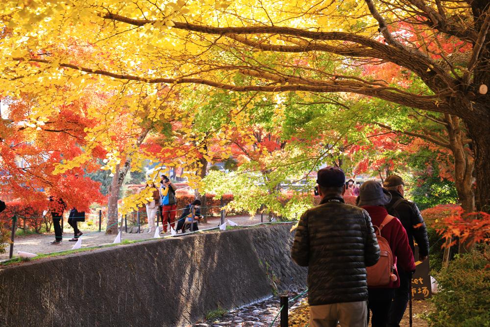 ● 紅葉シーズンは多くの旅行者が歩道を歩いているため、歩行者優先を心がける