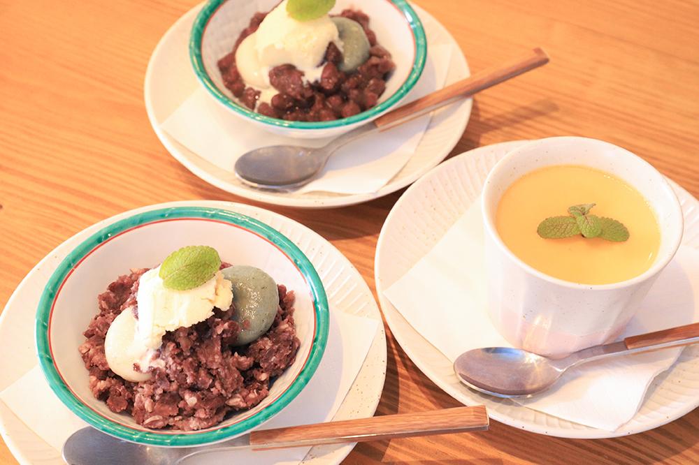 特製プリン、米粉のシフォンケーキ、白玉ぜんざいなどから選べますが、中でもおすすめは「発酵あんこ」の白玉ぜんざい。