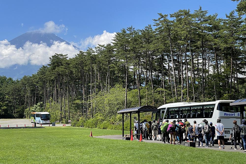 富士山が開山しマイカー規制がはじまると、吉田口五合目行きのシャトルバスの発着場になります。
