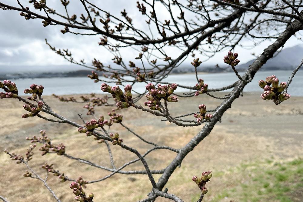 河口湖周辺の桜の開花は東京や甲府に比べて遅い