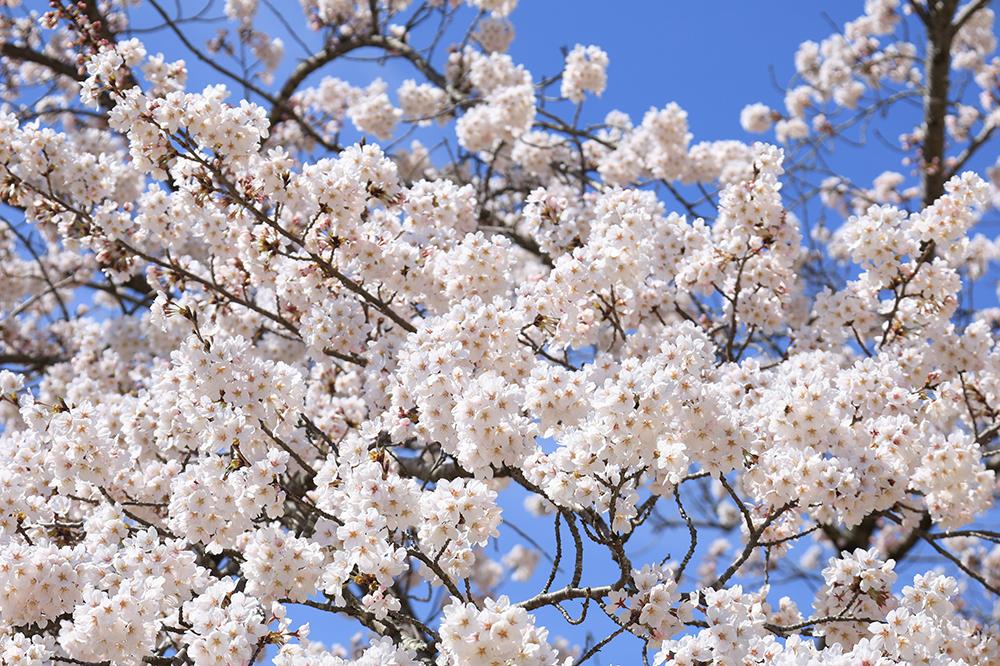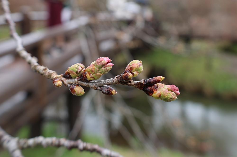 河口湖は、東京や甲府と比べて標高が高く、平均気温もおよそ5℃ほど低い地域です。そのため、3月に桜が咲くことは珍しく、例年4月上旬に開花し、4月中旬にかけて見頃を迎えます。
