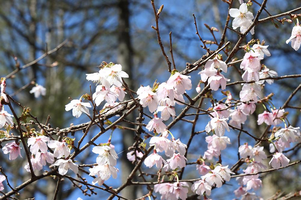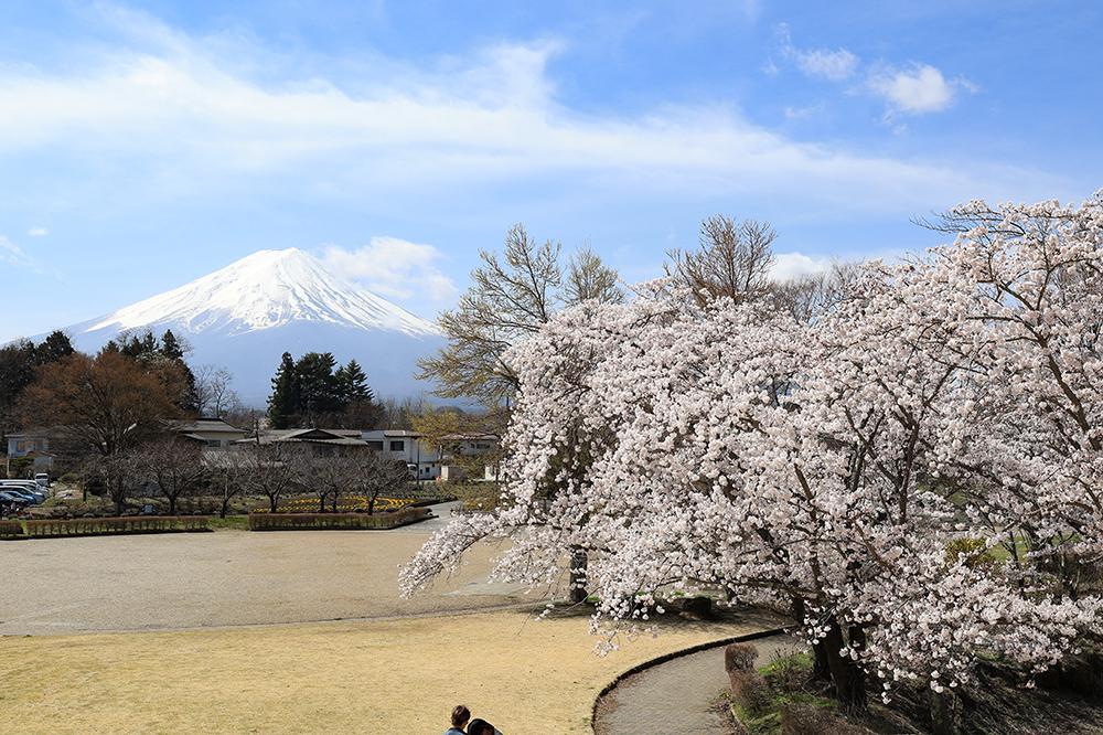 標高が高いため、園内の桜やツツジの見頃は4月中旬頃。桜の開花時期は、河口湖畔よりもやや遅めです。