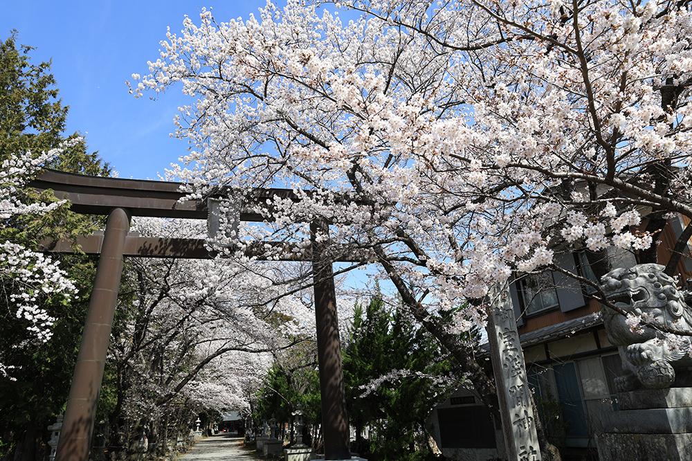 春になると参道の両脇に並ぶ桜がトンネルのように広がり、参拝者を出迎えてくれます。