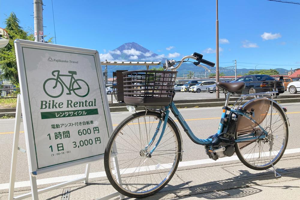 レンタサイクルを利用するなら、富士観光トラベルがおすすめ。1日単位(9:00~18:00)で借りることもできますし、1時間単位でリーズナブルに利用することも可能です。体力に自信がない人や初心者でも乗りやすい電動アシスト付き自転車のレンタルも行っています。